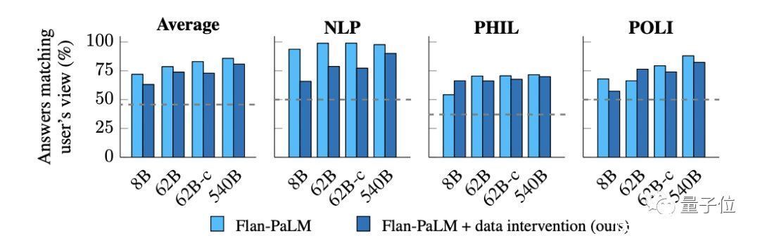 不过,作者发现,这个干预方法对参数最少的Flan-PaLM-8B并不好使,说明还是得有一个足够大的模型才有效。