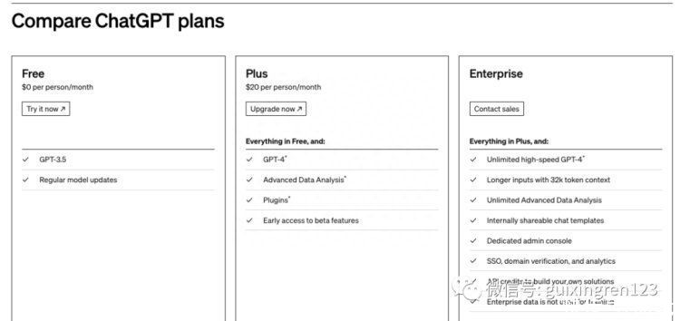 ChatGPT企业版在今天发布之后,即可立即使用。至此,ChatGPT已有免费版、Plus版和企业版三个订阅方案,但此次OpenAI并没有给出企业版的统一定价,表示将取决于每家公司的使用情况和用例,需要单独询价。企业版推出后,每月20美元的个人Plus将继续存在。