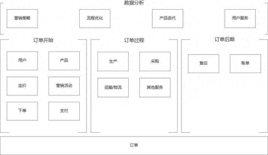 订单贯穿了整个业务流程,连接了产品、定价、活动、用户、下单、支付、服务过程、售后、账单。