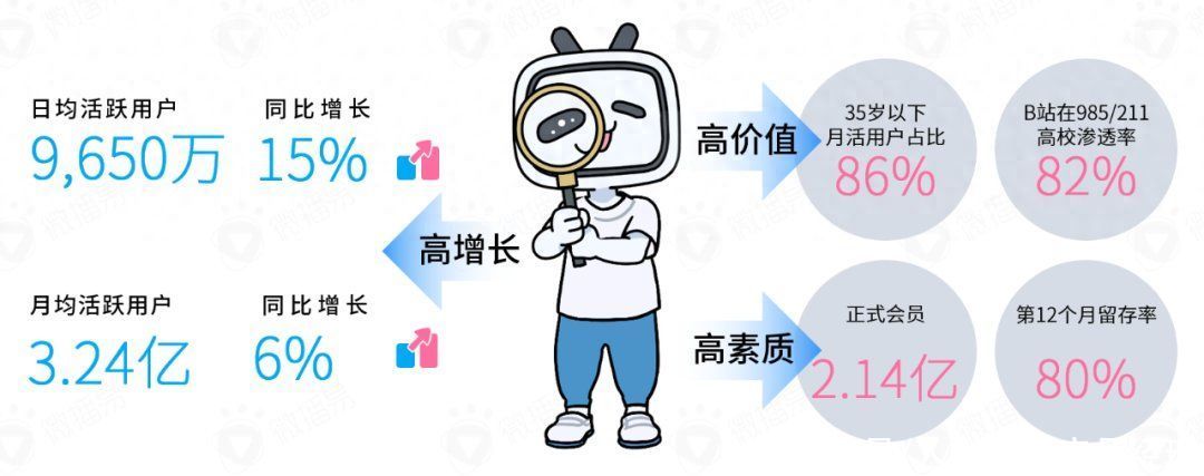 这些活跃的用户,35岁以下占比86%,高校渗透率达82%。第二季度,B站正式会员数达2.14亿,同比增长26%,正式会员第12个月的留存率稳定在80%。