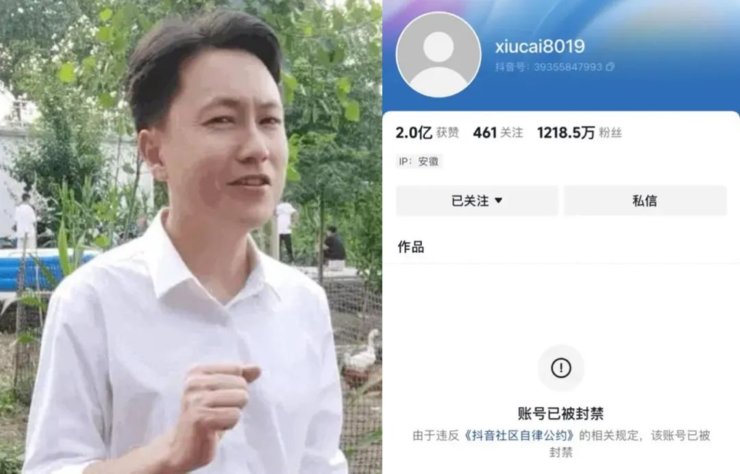 千万级抖音网红秀才账号被封禁