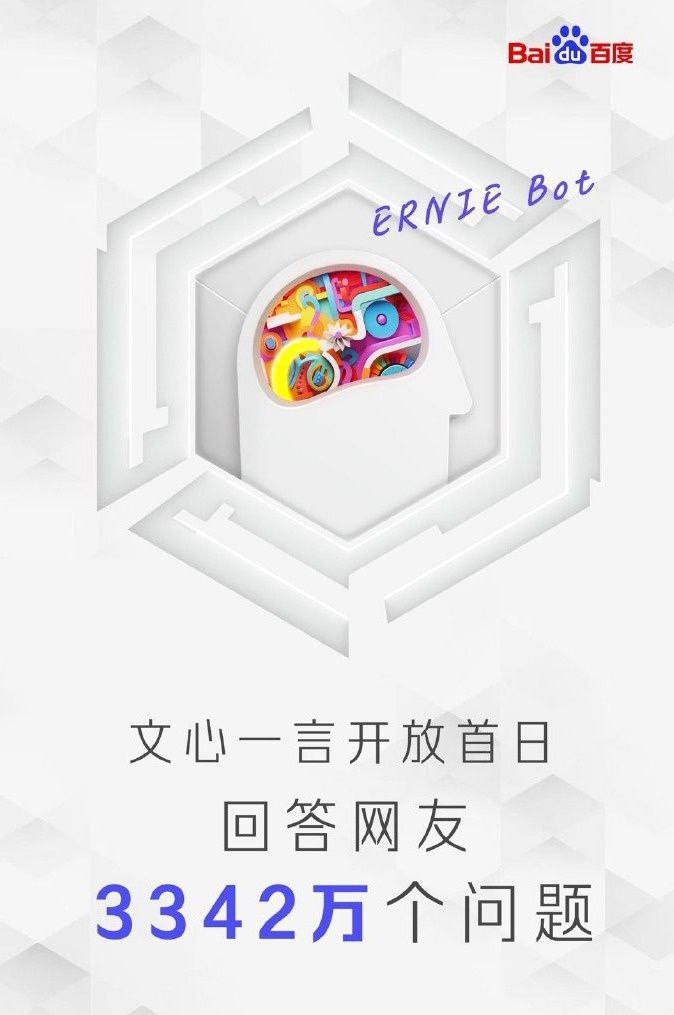 百度文心一言开放首日战报:回答用户3342万个问题,日活超100万