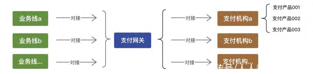 8. 支付网关简单来说网关就是有支付需求的各业务线统一对接外部支付通道的桥梁,一家大的公司,可能多个业务线都需要支付能力,但不能各个业务线都对接一遍支付机构,所以需要一个系统统一对外交互,完成与支付机构的对接,而其他系统直接对接支付网关即可,统一对外的桥梁也就是支付网关,大概关系如下图: