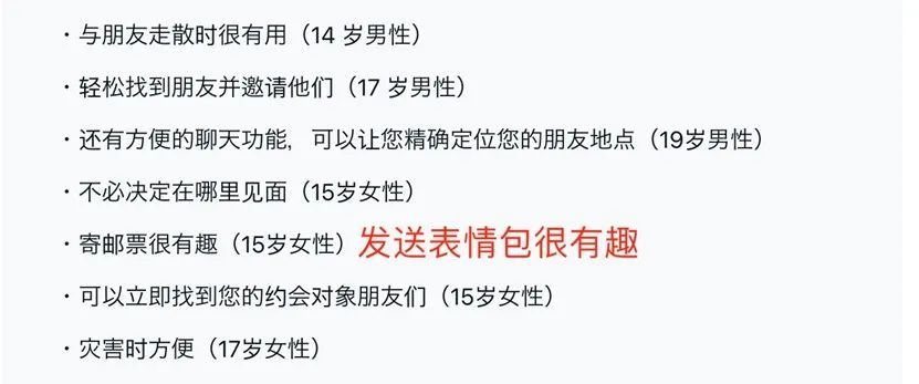 对日本 Zenly 用户的调查(翻译后),问题:Zenly 的优点与好处|图片来源:testee