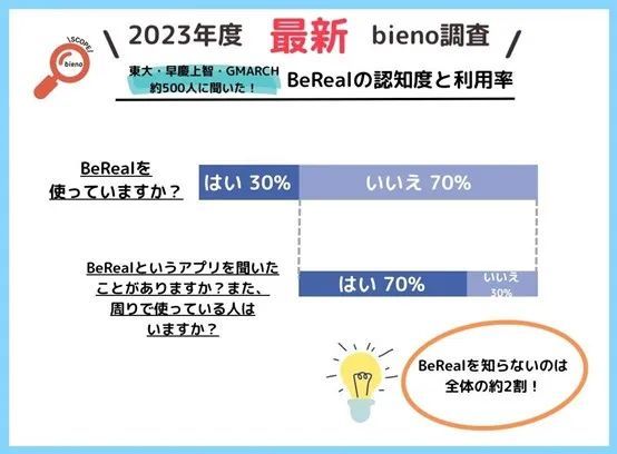 2023 年对日本大学生 BeReal使用情况调查 | 图片来源:bieno