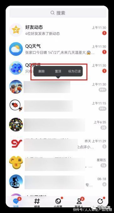 在今天这个话题上,QQ同样表现优异,左滑和长按都支持,只看这一点,我觉得比微信好。而且在长按之后,只显示了一个很灵巧的浮框,既不遮挡,交互路径也很短。