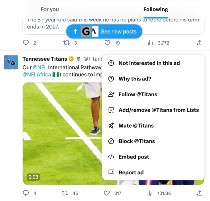 TechCrunch 的 Sarah Perez 表示,X(推特)平台标记广告的位置也比较“鸡贼”,放在推文的右上角,紧挨着发帖者的名字和 @用户名,批评者认为在这个位置显示广告,看起来不太引人注意。