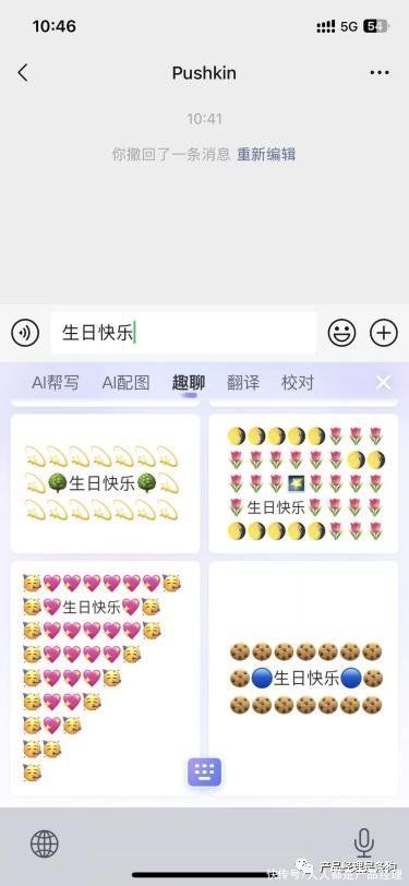表情功能,微信键盘可以根据输入的文字自动查找并容许直接发送在微信对话中,输入“我一定努力”,会自动识别成“努力”的表情。输入“美味的蘑菇”,只会识别成“美味”的表情,这一功能还需要完善。