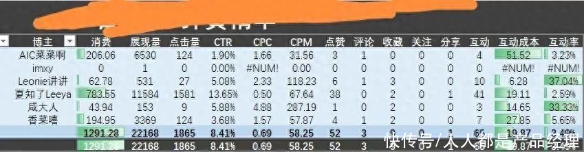 A4:美妆看的话,整体都很高,但是有些值得留意的,第四个博主的CTR和CPC都不错,但是CPM偏高,要调整一下投放模式,在继续加推应该挺不错的。而第一个博主CPM虽然是最低的,但是点击偏低,可以往封面标题调整之后再继续投。