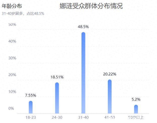 娜涟的受众群体会比同类宣传底妆养肤产品,像红地球的受众群体年龄大一些,红地球的受众集中在18-30岁之间,主要是genz和小镇青年这两类群体;而娜涟的受众群体偏向于31-40和40-50岁,分别占比在48%和20%左右,主要是精致妈妈这类群体;