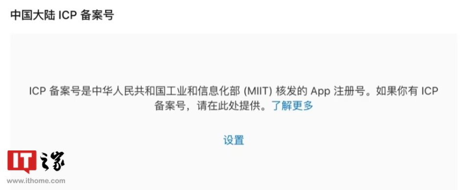 9 月 29 日消息,苹果日前更新了 App Store Connect 在线支持文档,指出在中国大陆上架的 App 必须具备有效的互联网信息服务提供者(ICP)备案号。