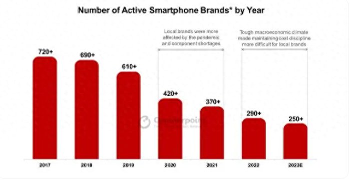 机构:2017-2023年间近500个智能手机品牌淡出市场