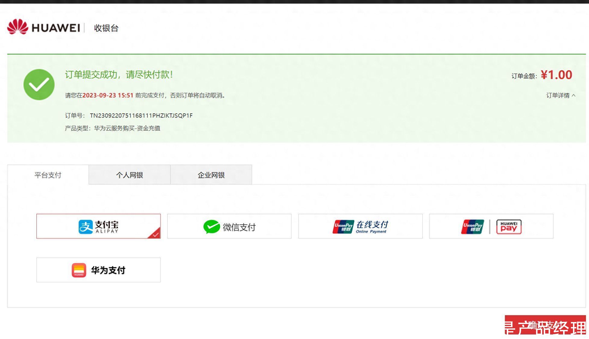 网银支付:网上银行支付,一般需要使用U盾做数字签名防止抵赖。