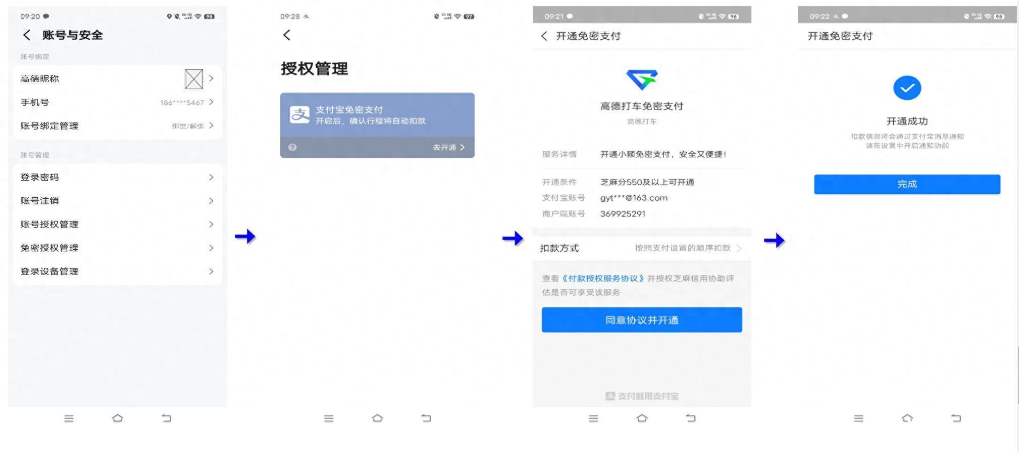 签约开通代扣、免密支付、资金授权等。