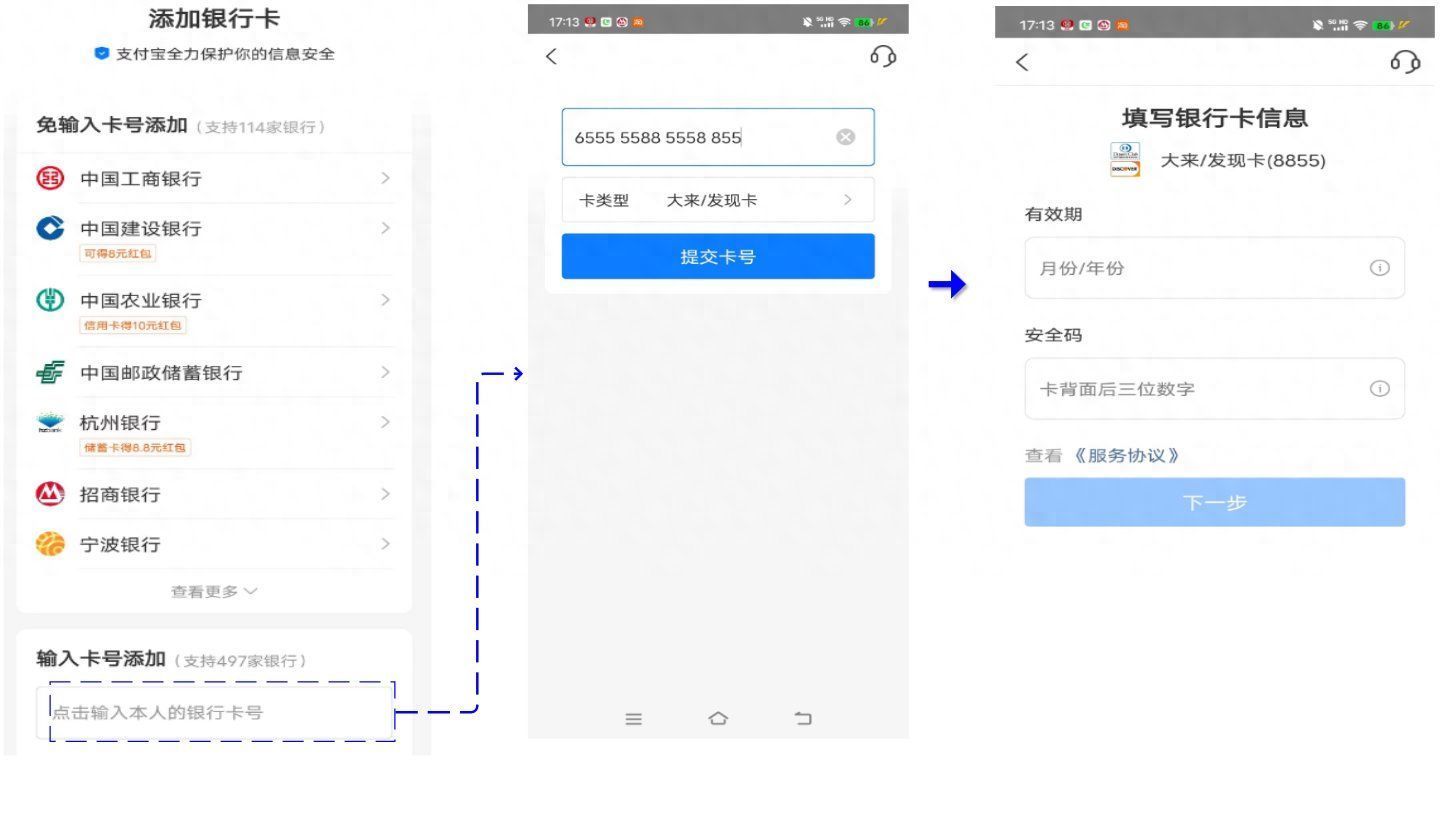 淘宝购物支付宝交易中绑卡借记卡和信用卡都支持